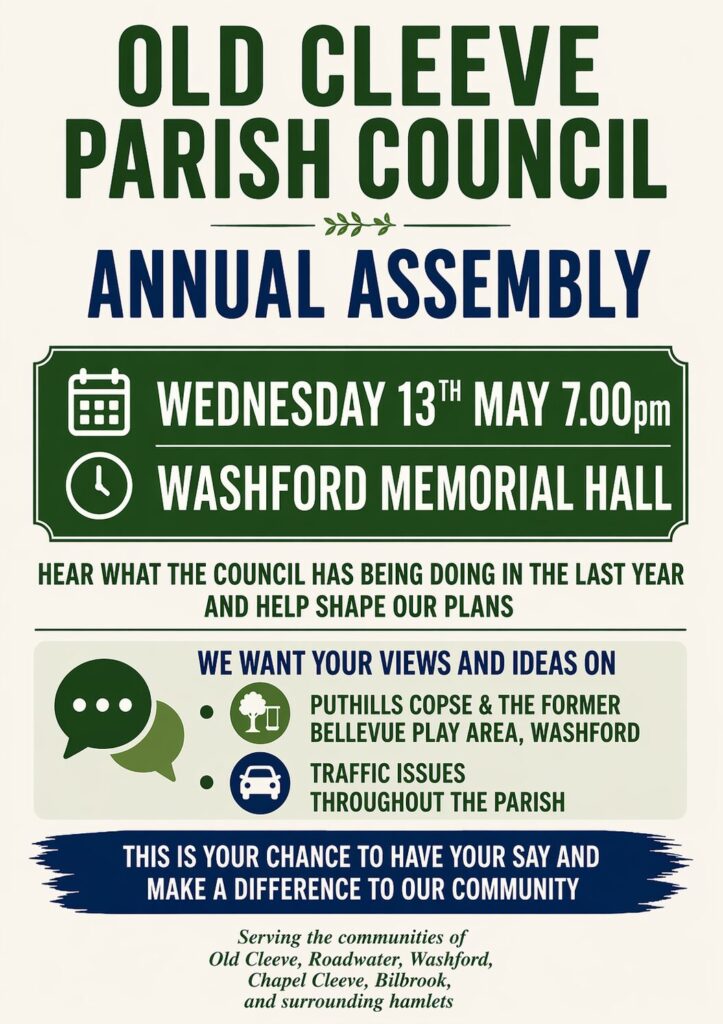 Old Cleeve Parish Council is a civil local authority with responsibility for local & community issues.
